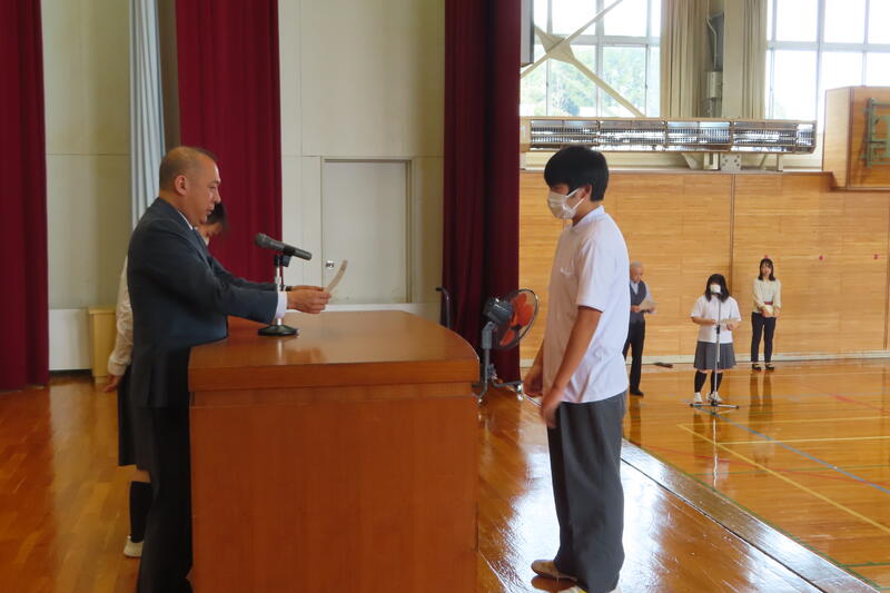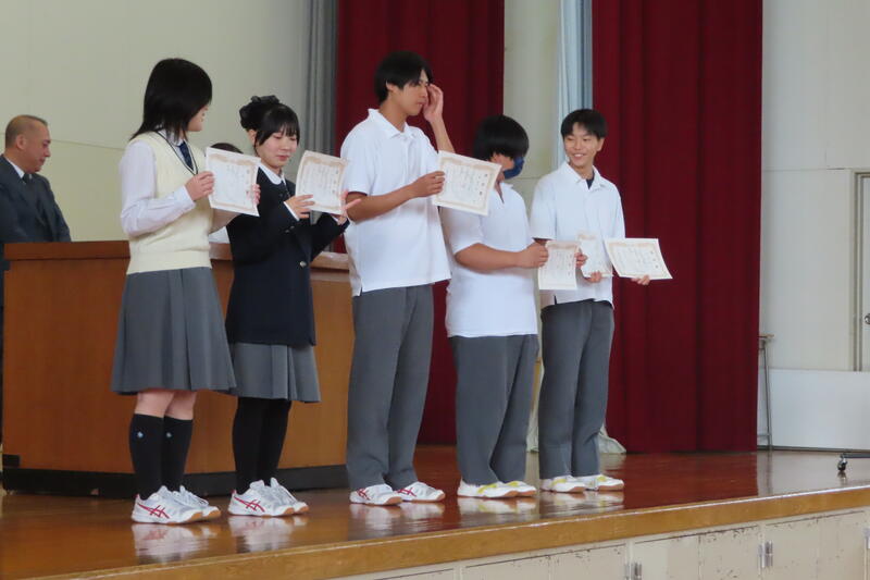 続いて行われた認証式では、生徒会役員6名の認証が行われ、さらに各クラスのHR長・役員が呼名されました。