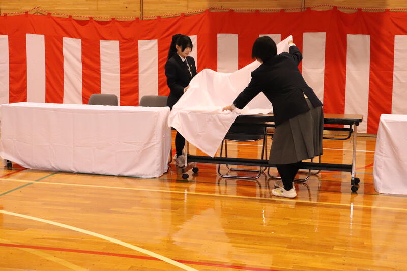 2月27日(金)、1・2年生が卒業式に向けて式場設営を行いました。