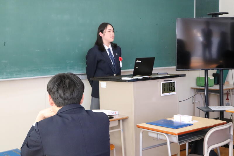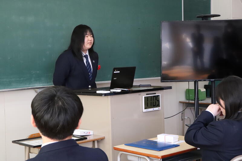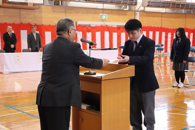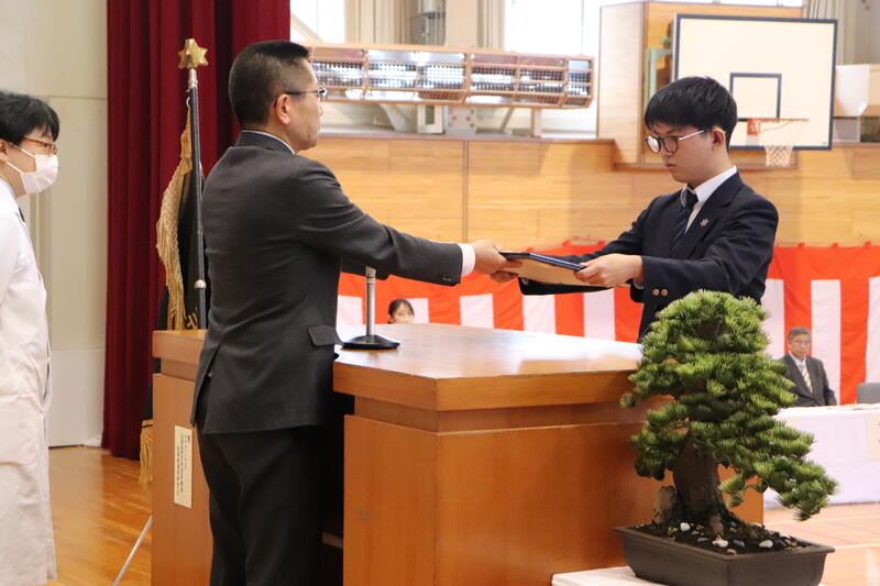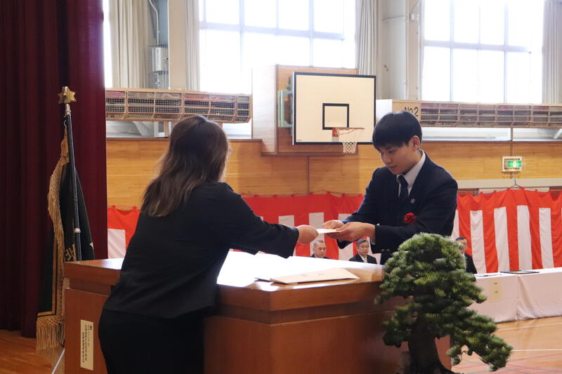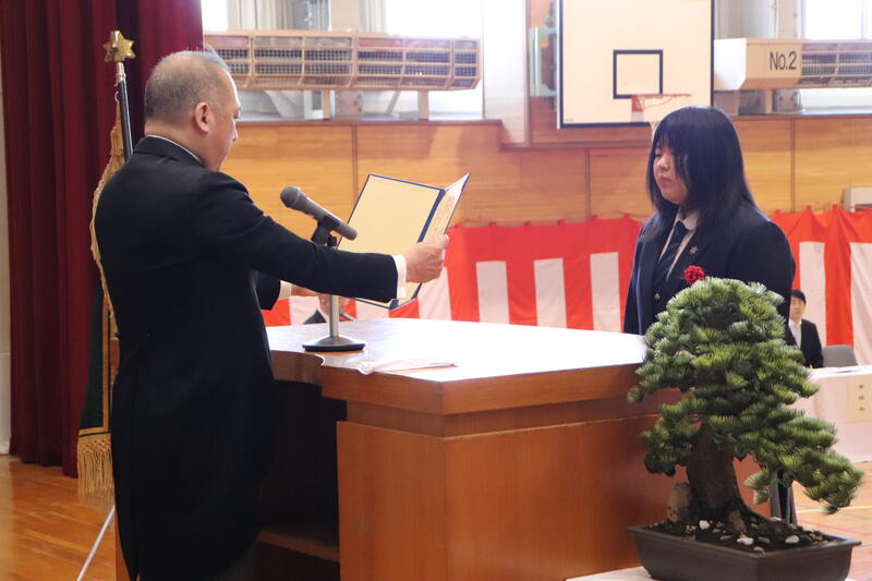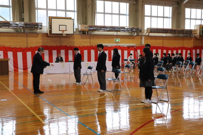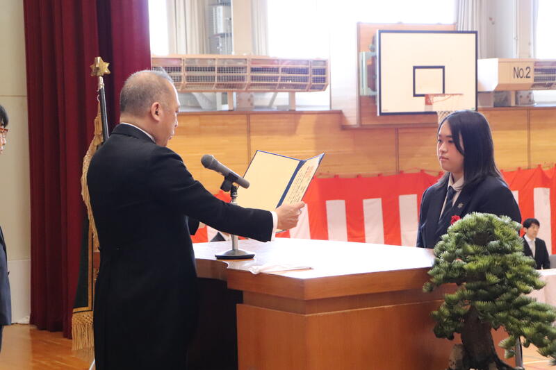 また、同窓会より卒業証書ホルダーを贈呈していただきました。卒業を間近に控え、生徒たちにとって節目となる式となりました。