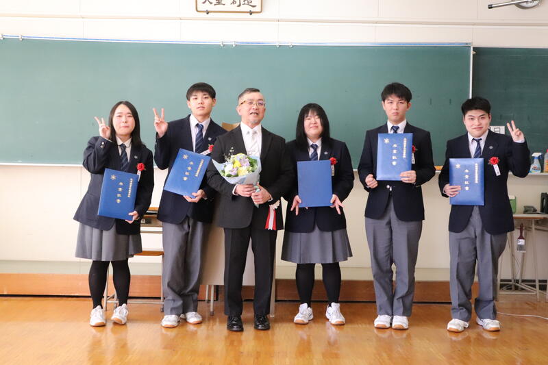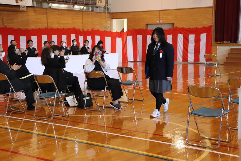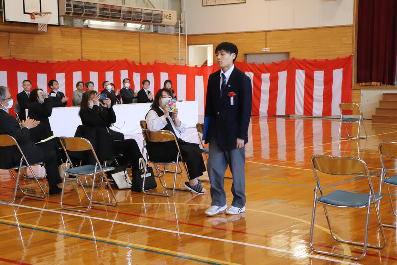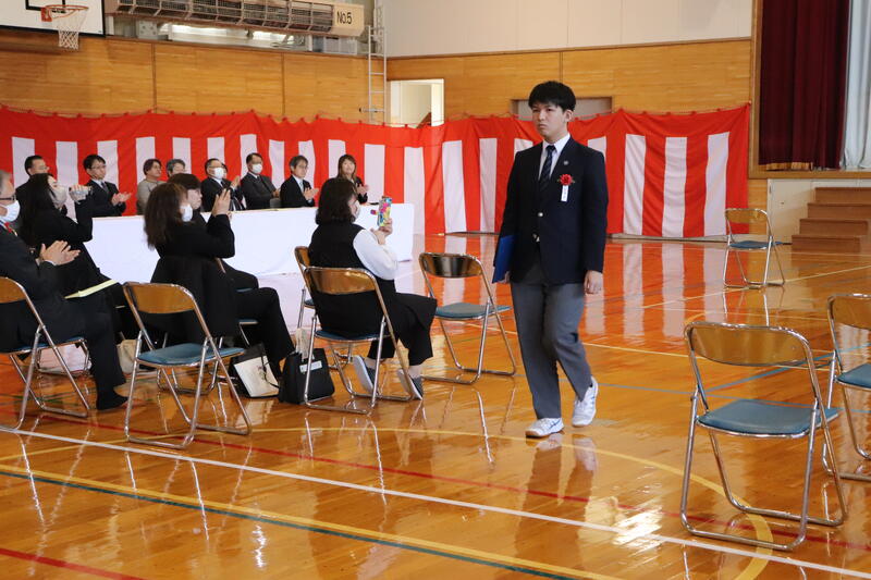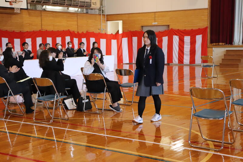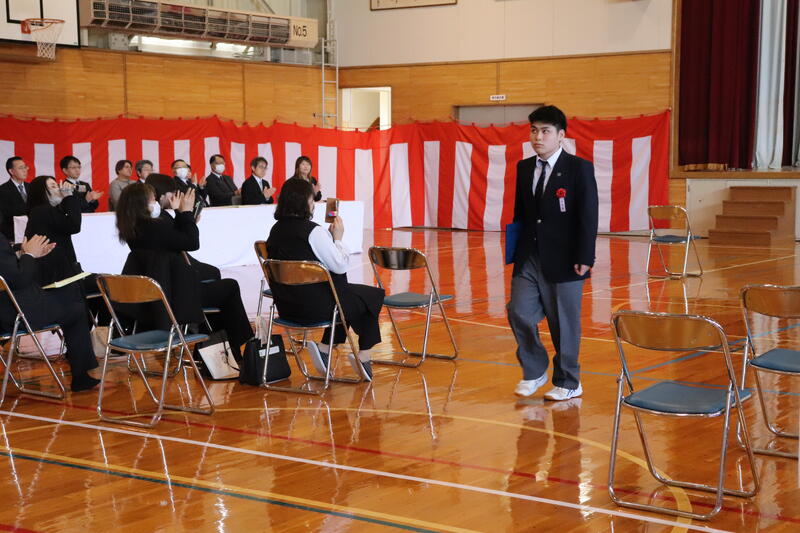 晴天に恵まれ、多くのご来賓や保護者の皆様にご臨席をいただき、在校生、教職員が見守るなか、温かい祝福を受けて卒業生5名が本校を巣立っていきました。