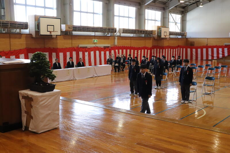 その後、3年生も加わり、全校生徒で卒業式の予行を行いました。本番を意識した緊張感のある雰囲気の中で、式の流れを確認しました。