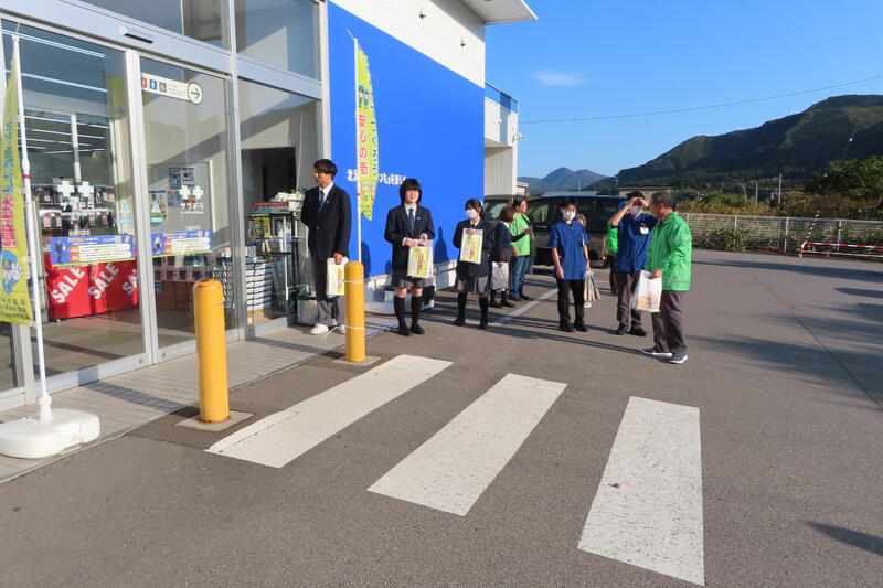 生徒たちは店舗を訪れる利用者の方々に、特殊詐欺被害の防止を呼びかけました。